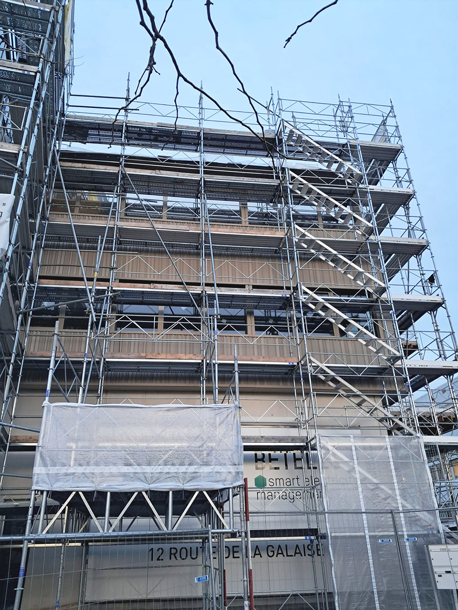 Les travaux de transformation et rénovation énergétique de l’ancien siège de Clarins à la Route de Galaise 12 ont commencé. Après assainissement de l’isolation à l’intérieur des murs au rez-de-chaussée, la découpe des ouvertures dans les murs est en cours.
