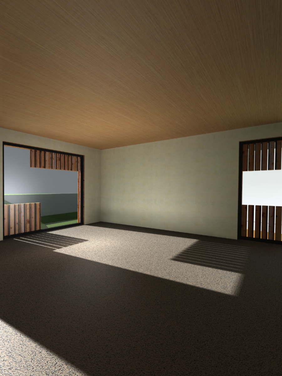 La façade est fermée et régulière au nord pour les salles de repos, avec des volets et un bardage à claire-voie permettant de tamiser la lumière et des stores intérieurs assurant l’obscurité totale.