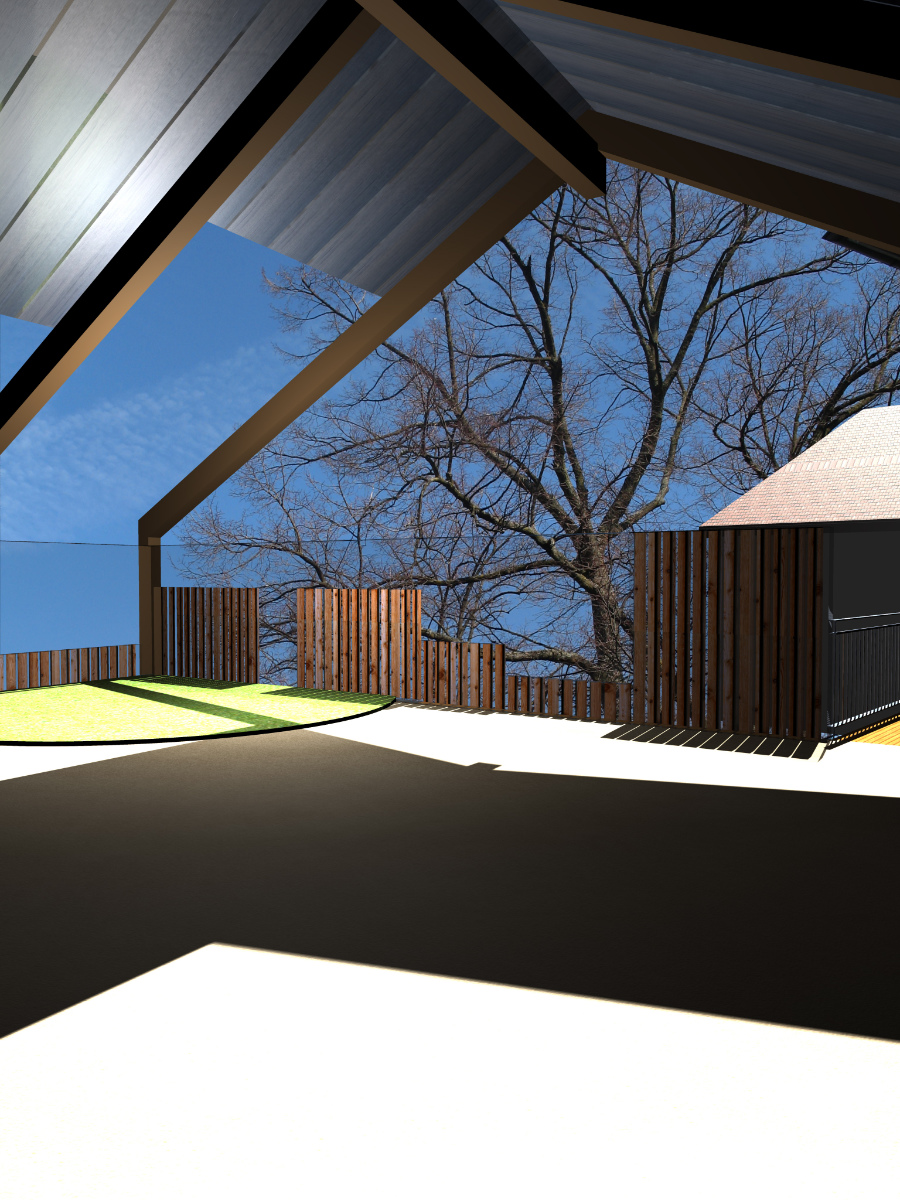 La conception se définit par une cabane pour les enfants, nichée dans les arbres et construite en bois, ouverte sur l’extérieur en offrant des préaux semi- couverts en toiture.