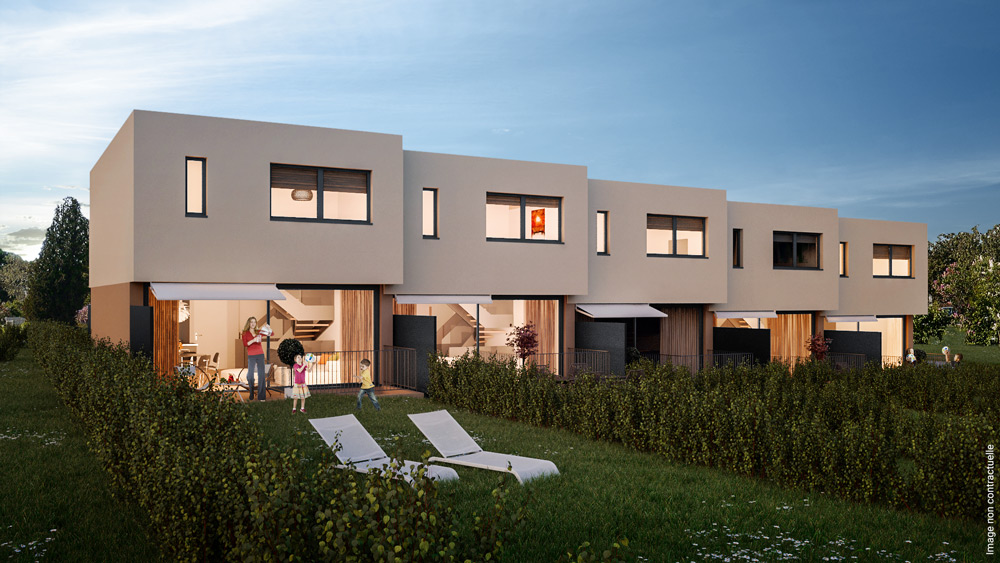 La parcelle concernée se situe sur la commune de Meyrin, à la limite d’une zone en pleine restructuration où les villas individuelles cèdent la place à des constructions mitoyennes.