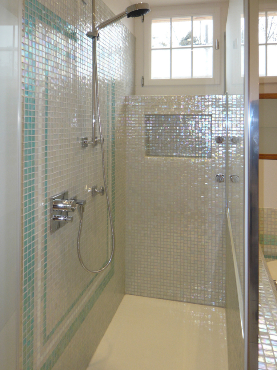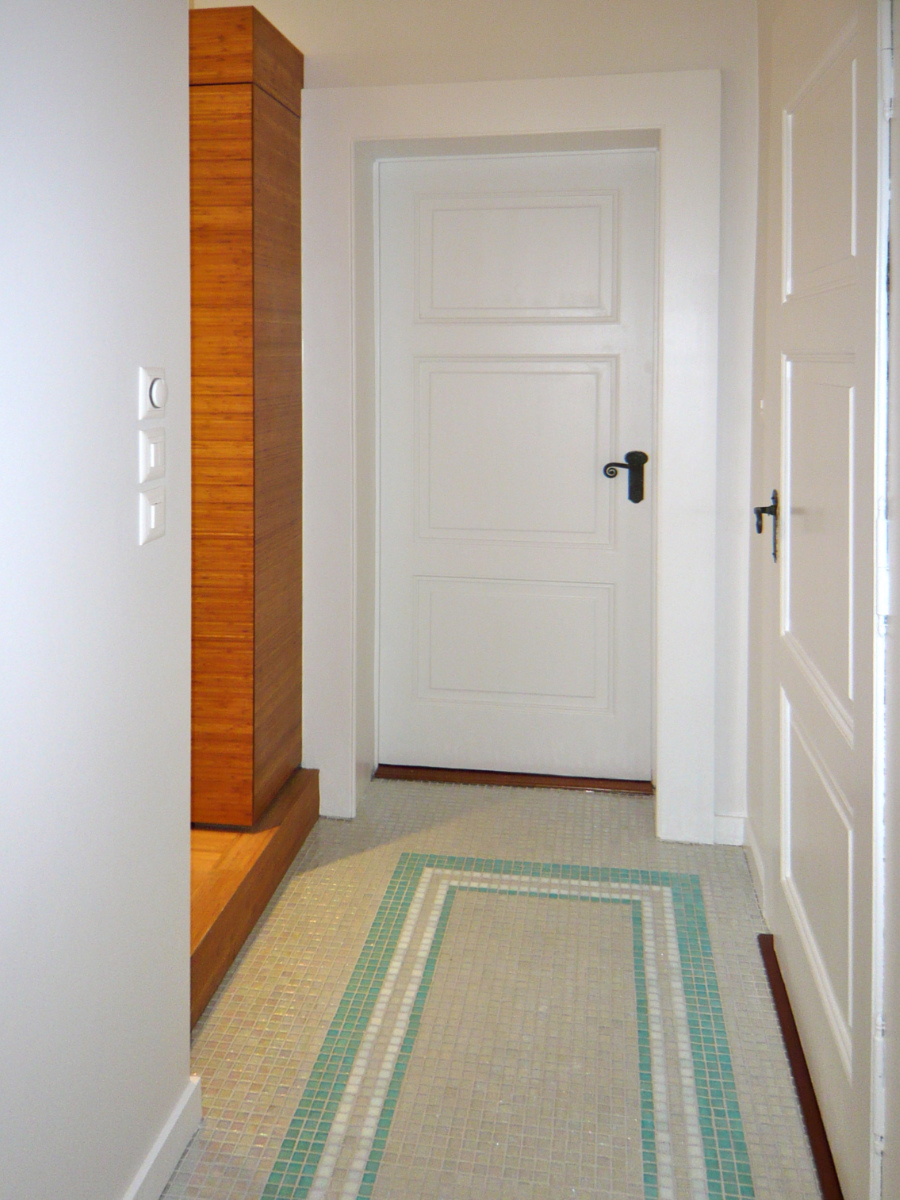 C’est ainsi que l’utilisation de matériaux raffinés (menuiserie et parquet en bambou, mosaïque en pâte de verre, verre émaillé,…) a été privilégiée.