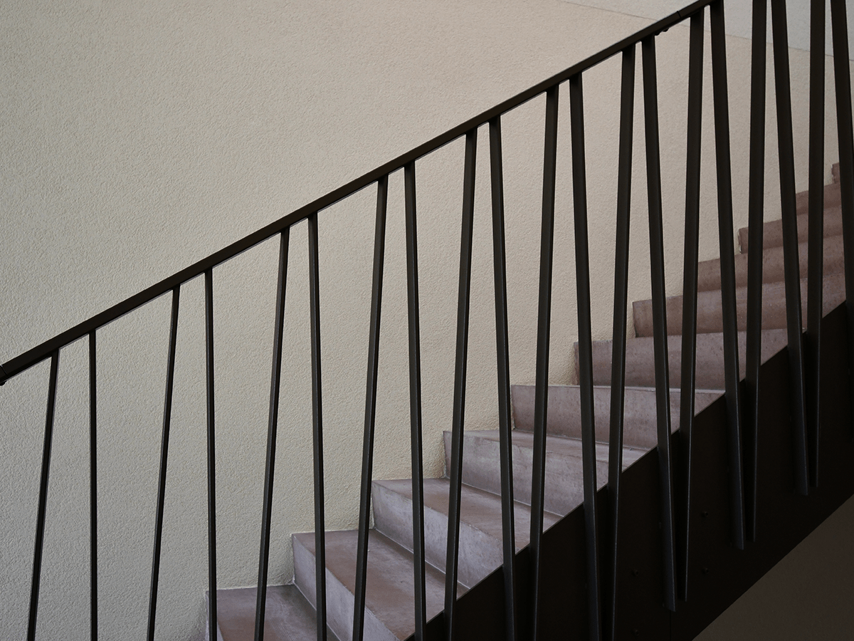 bâtiment avec une grande cage d’escalier largement vitrée sur la