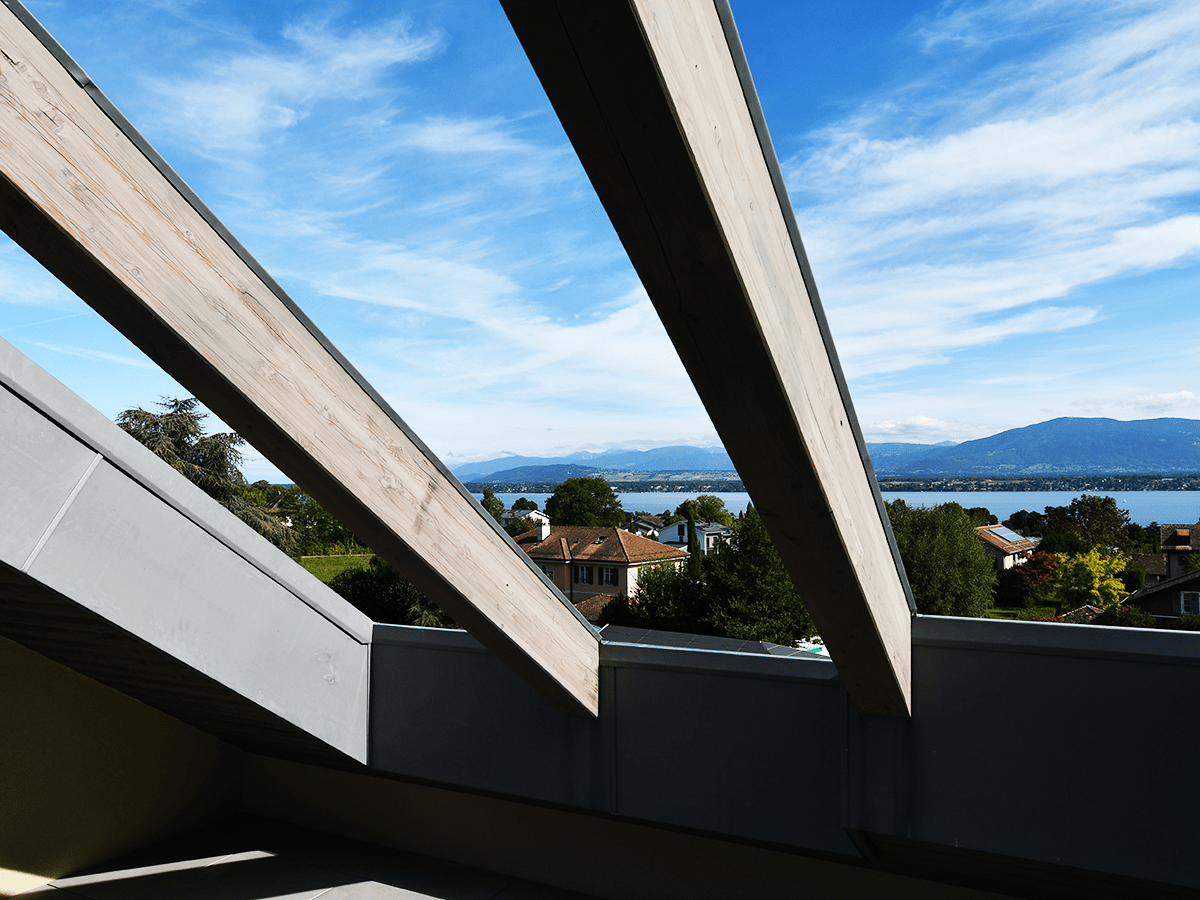 dotées de grandes baies vitrées sont revêtues soit de bois, soit