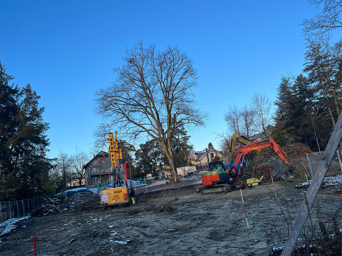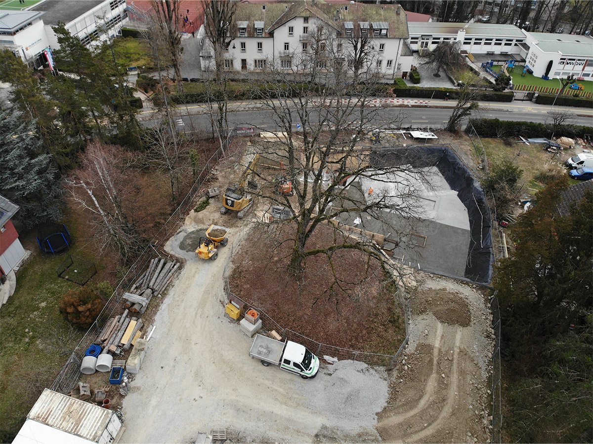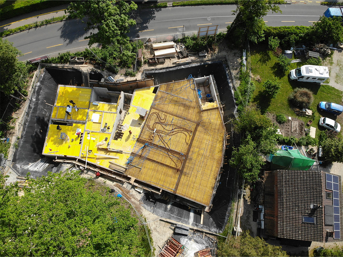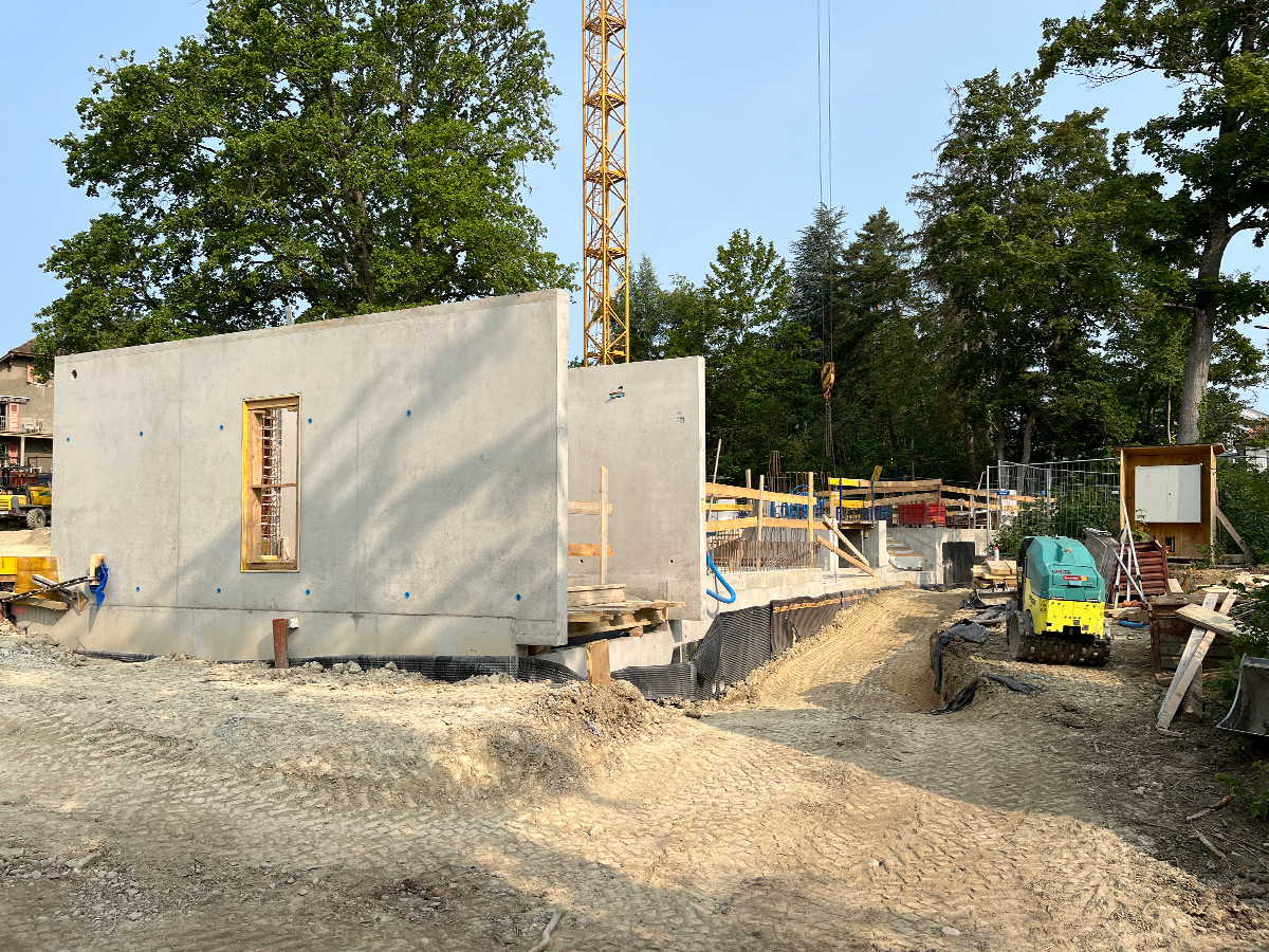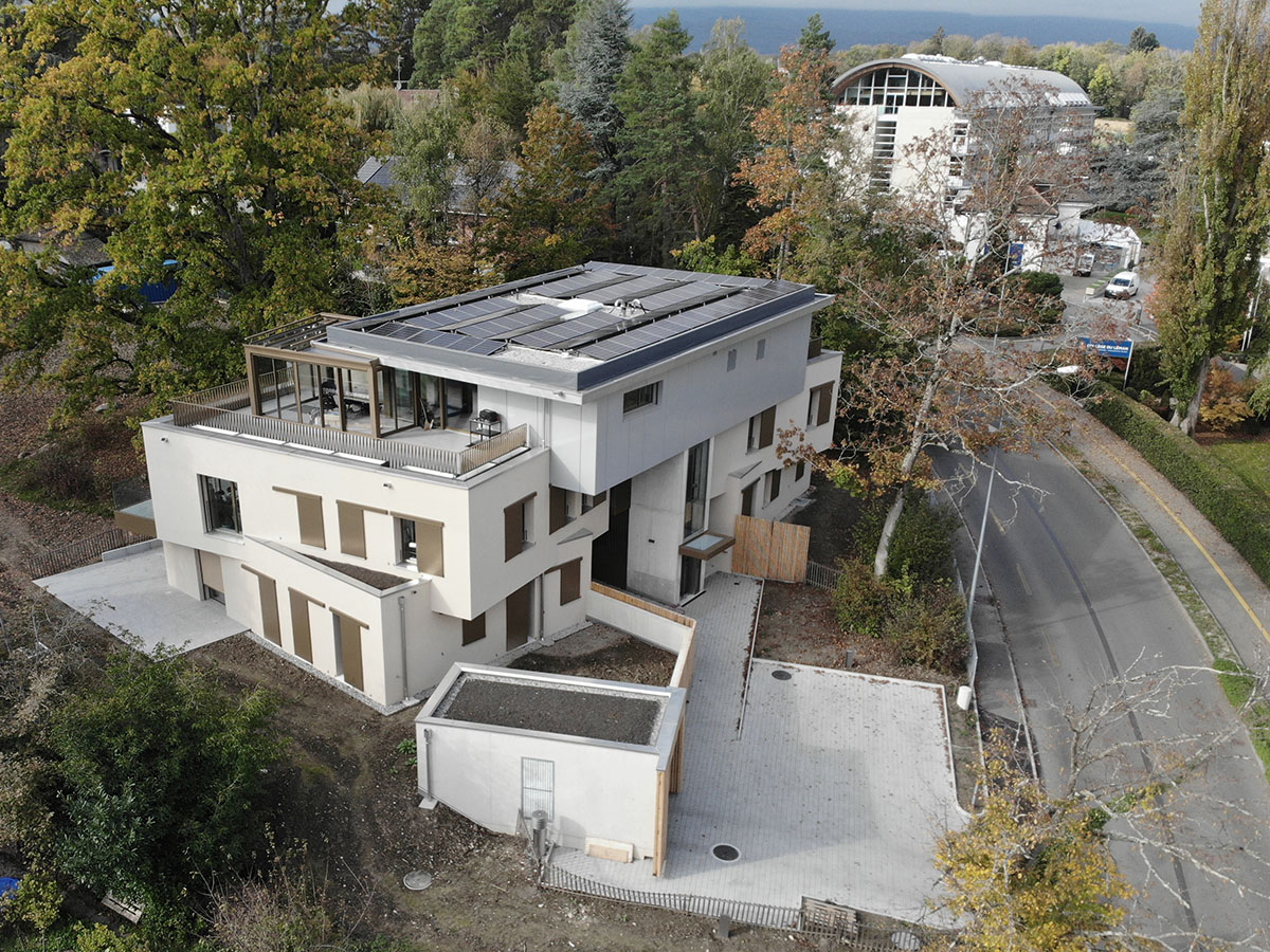 Situé au début de la commune de Versoix à 5 minutes de la gare, l’ensemble de 5 appartements est bordé de maisons individuelles d’un côté et du Collège du Léman de l’autre. Notre projet se situe donc à la charnière de ces deux environnements. Au centre de la parcelle, un magnifique chêne définit l’environnement et l’implantation de la construction, tandis qu’une forêt disparate a poussé au fil des ans à la lisière du terrain.