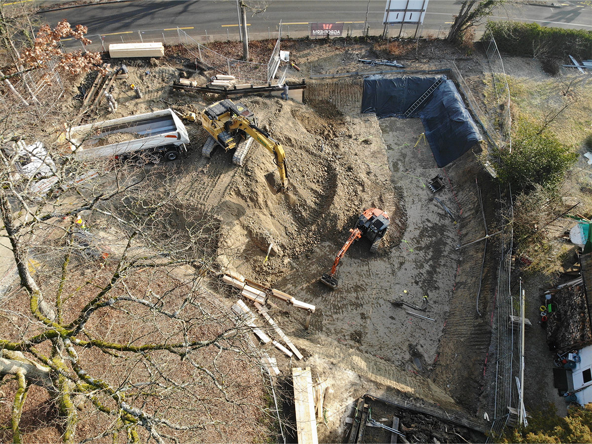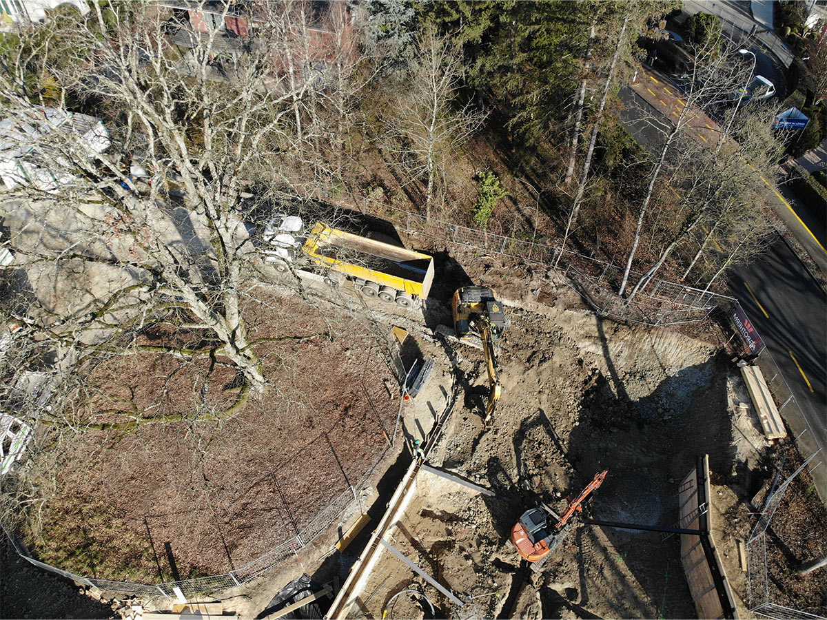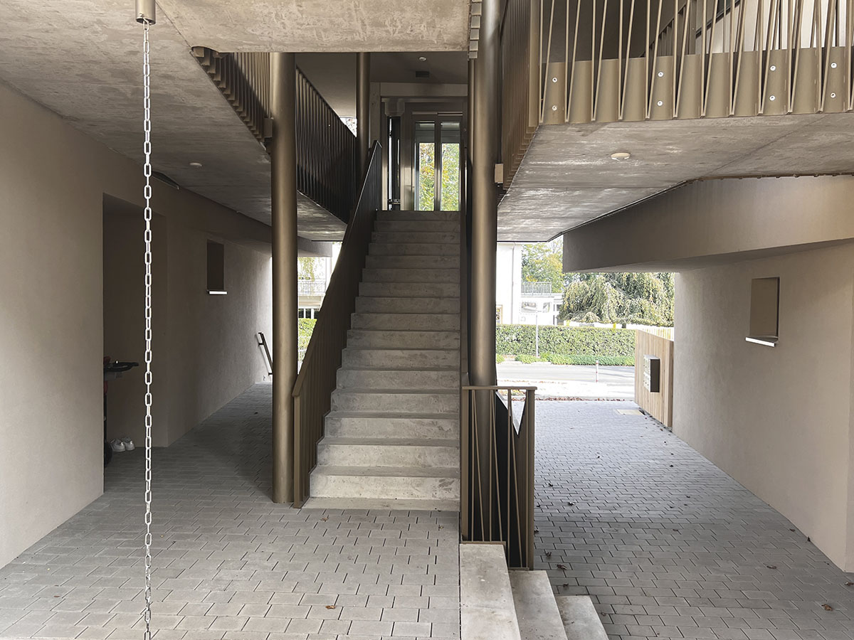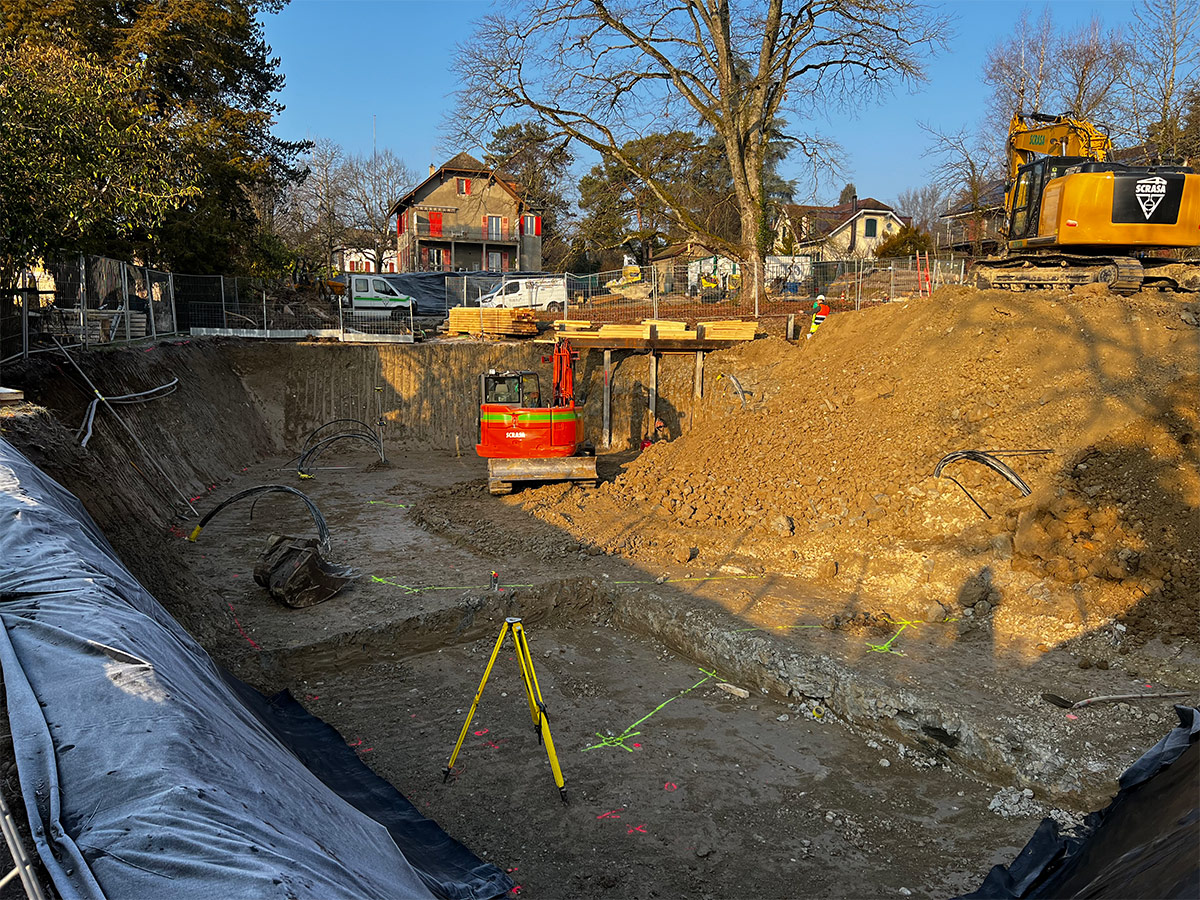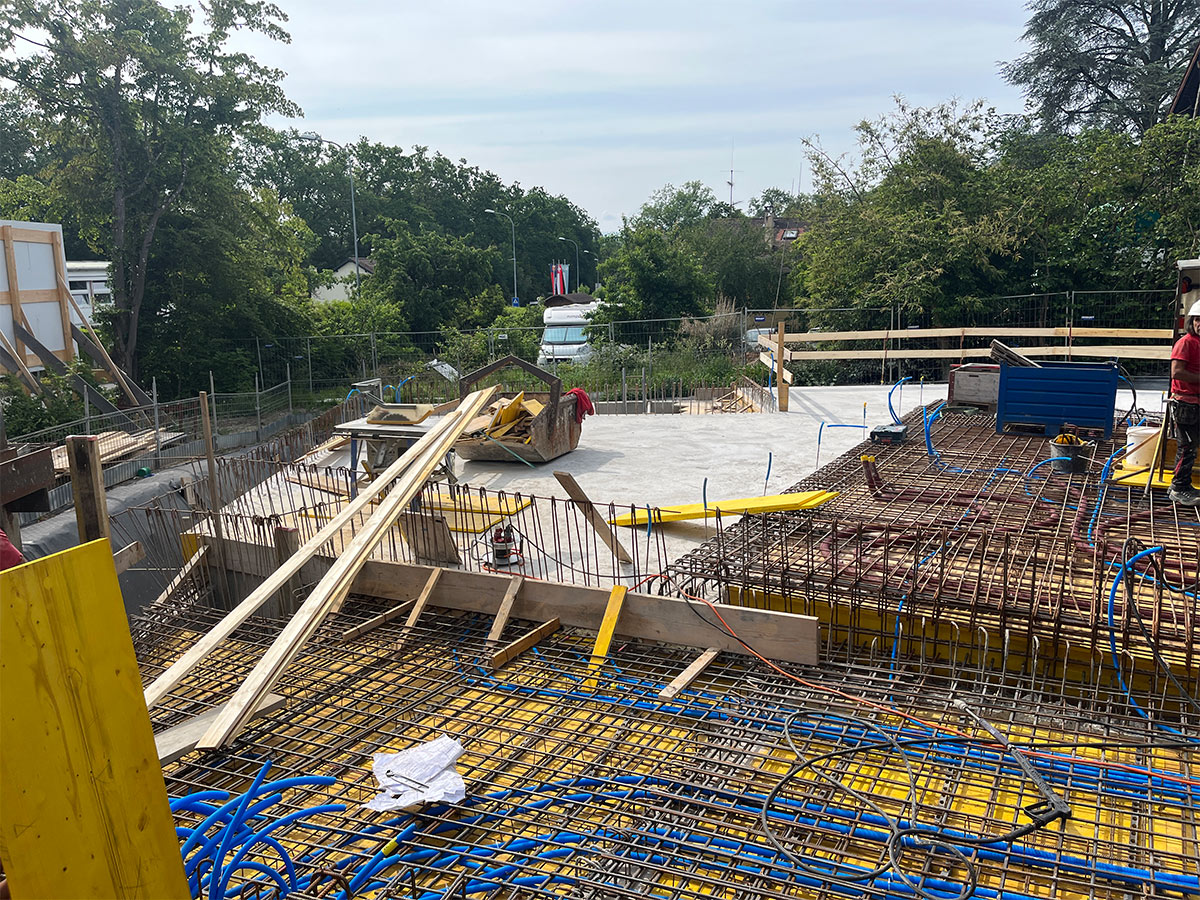 Situé au début de la commune de Versoix à 5 minutes de la gare, l’ensemble de 5 appartements est bordé de maisons individuelles d’un côté et du Collège du Léman de l’autre. Notre projet se situe donc à la charnière de ces deux environnements. Au centre de la parcelle, un magnifique chêne définit l’environnement et l’implantation de la construction, tandis qu’une forêt disparate a poussé au fil des ans à la lisière du terrain.