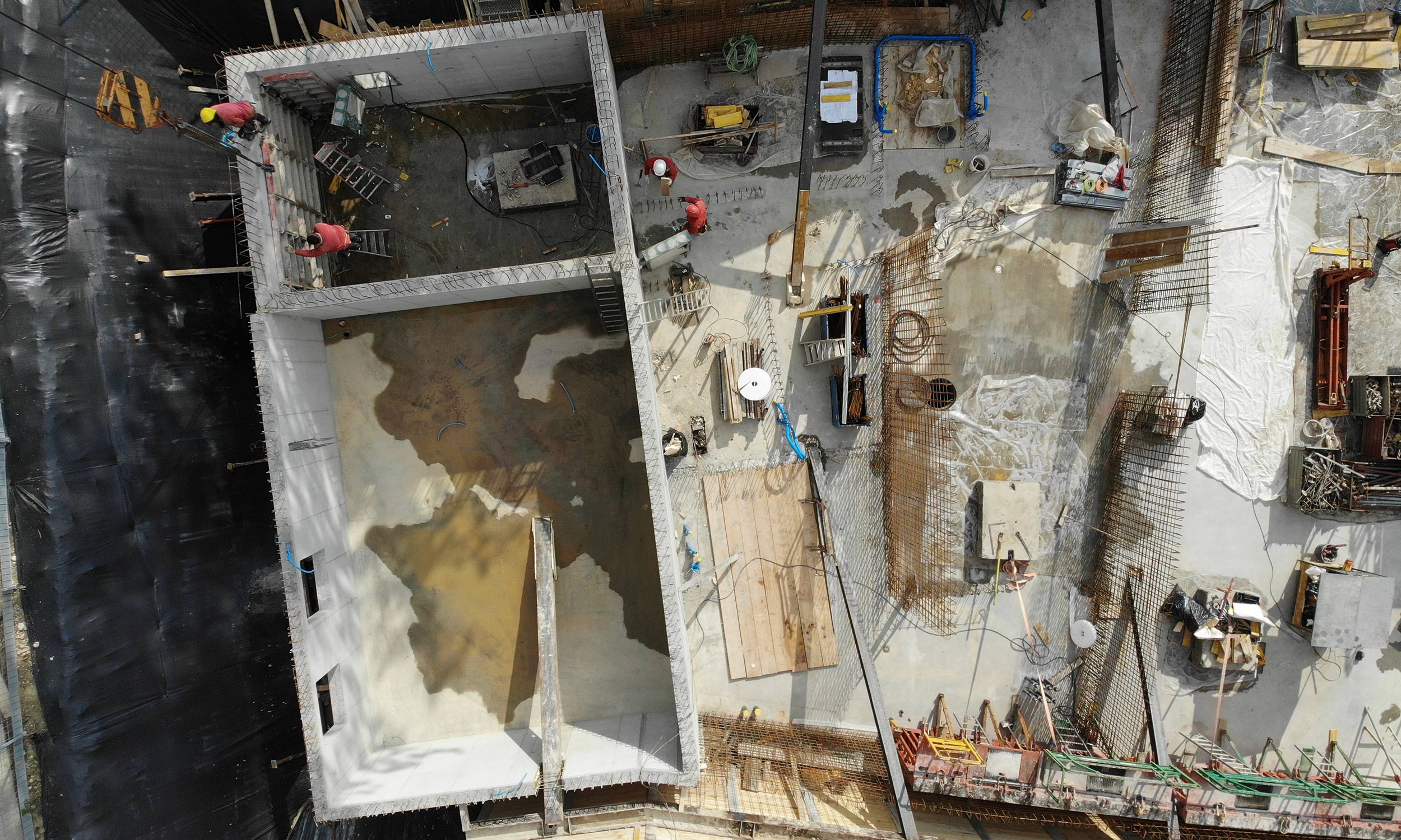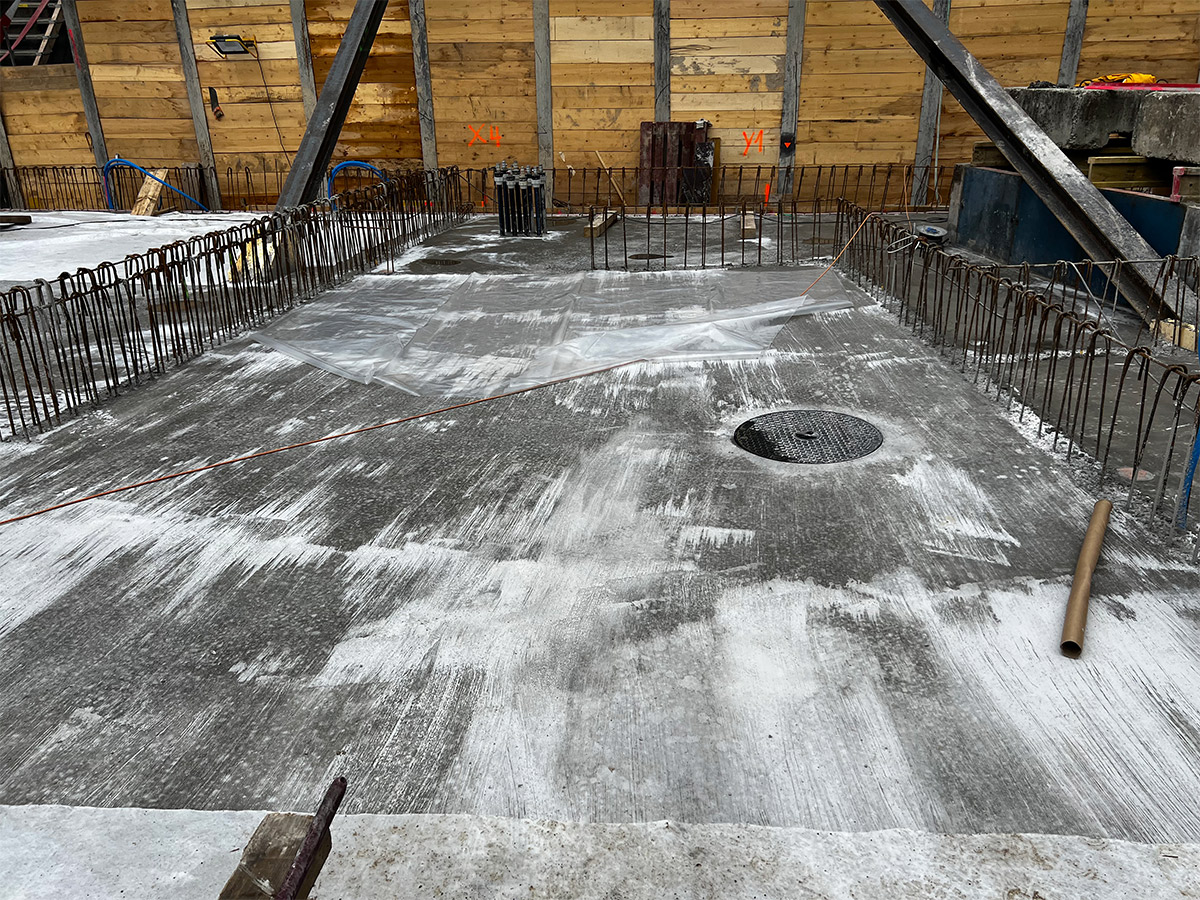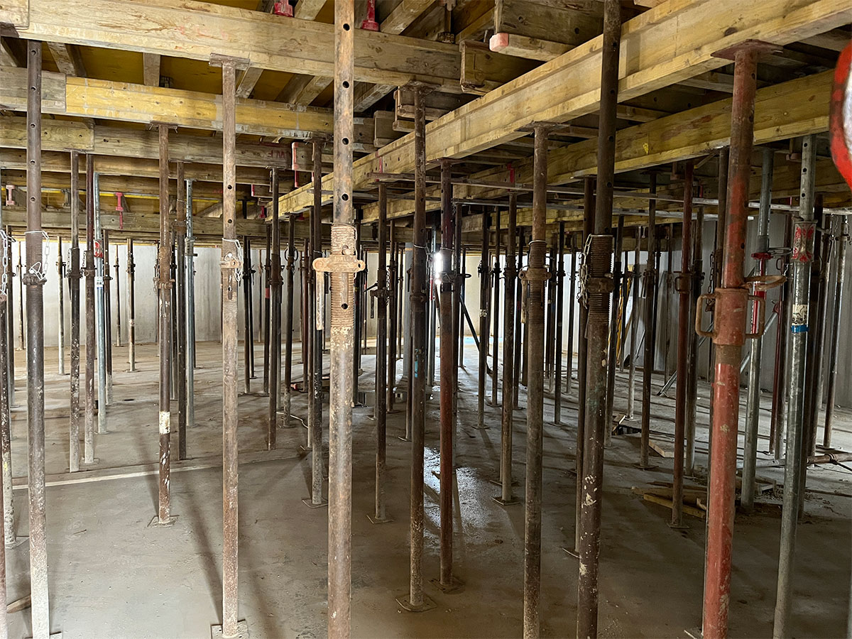 La structure du bâtiment est faite en bois. Les murs sont composés des panneaux bois avec une isolation en laine de roche. Les dalles sont en BLC avec une dalle de compression béton.