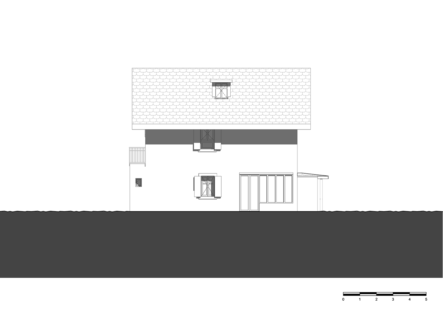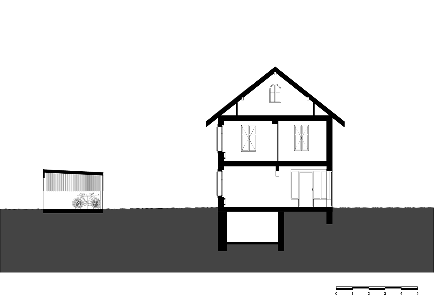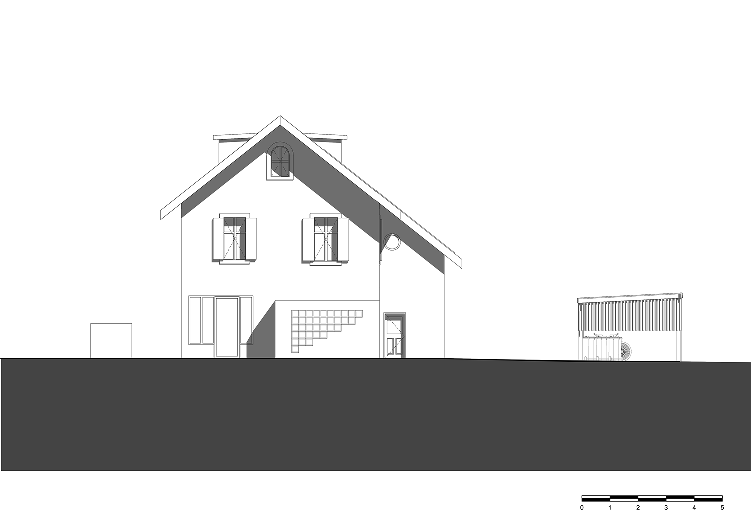 • Le remplacement du garage par un couvert à voitures équipé d’une toiture végétalisée, favorisant la gestion durable des eaux de pluie et la biodiversité locale.