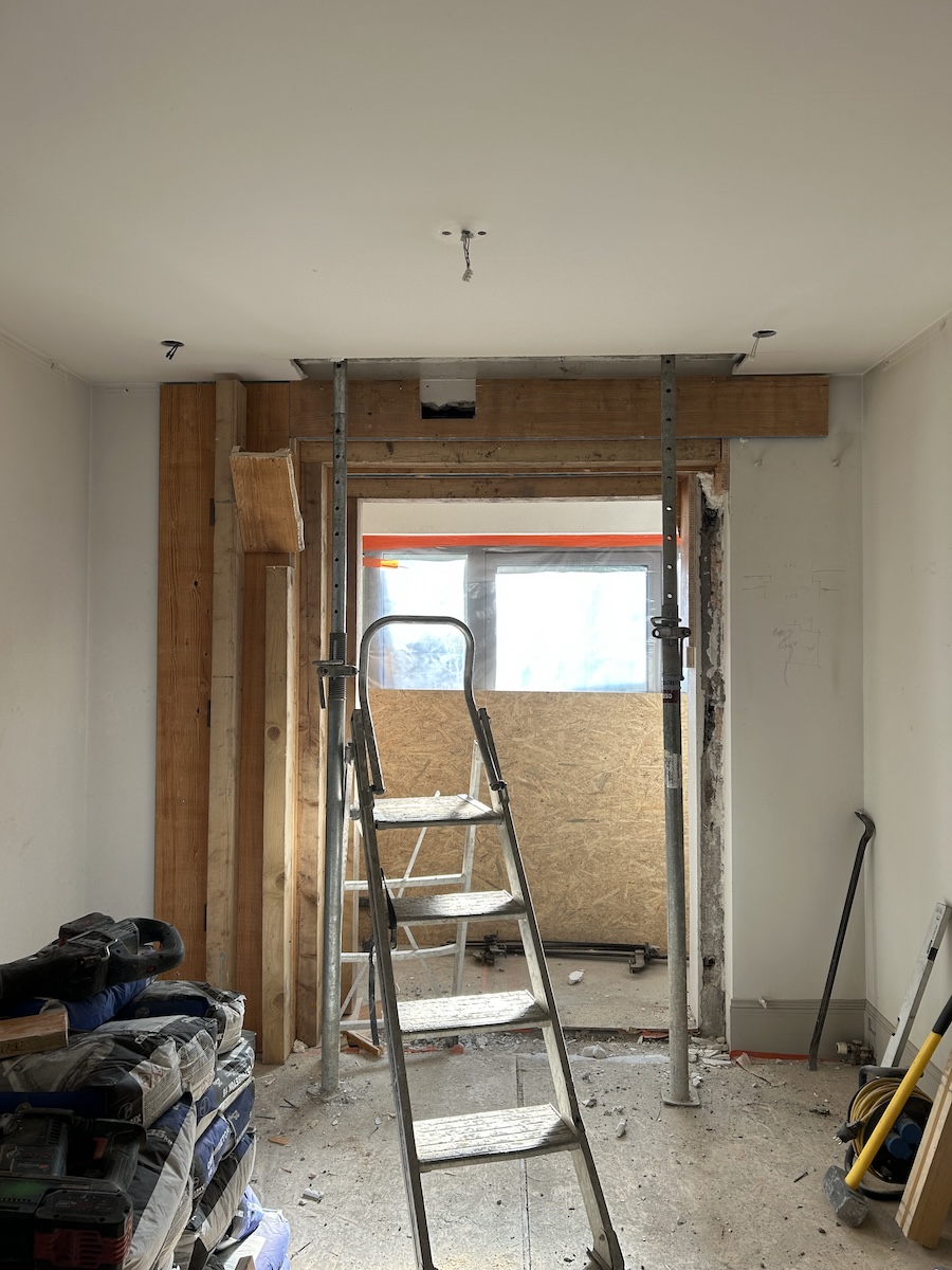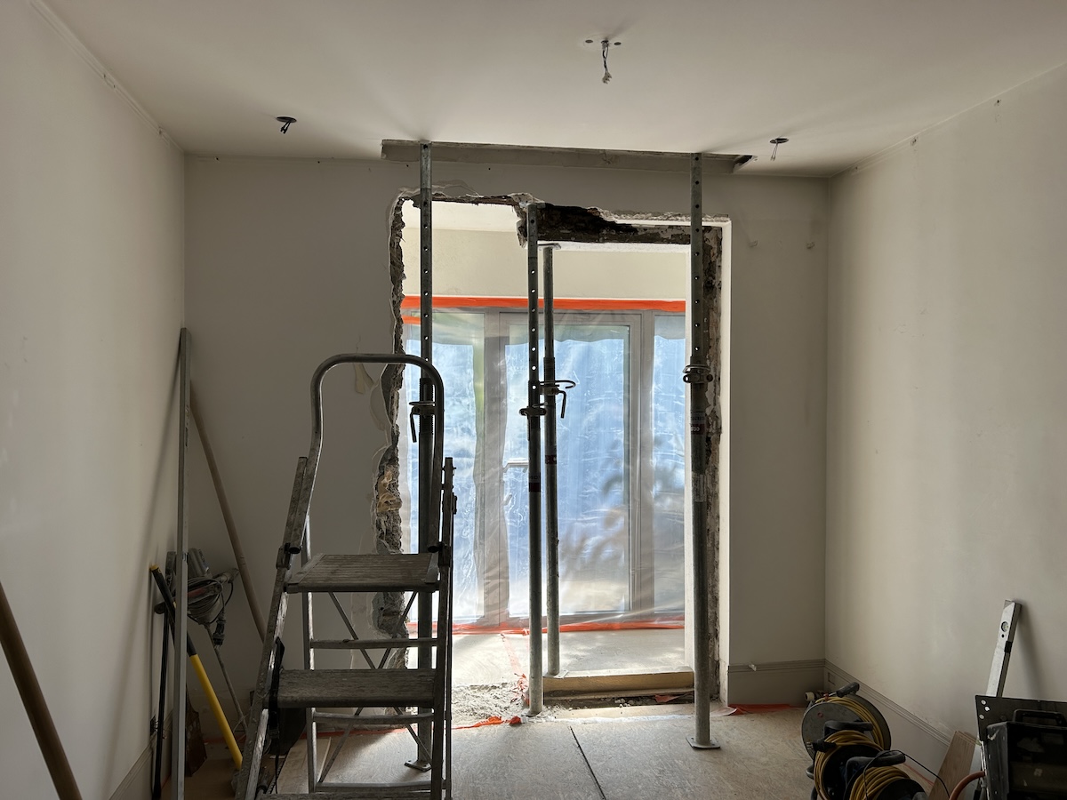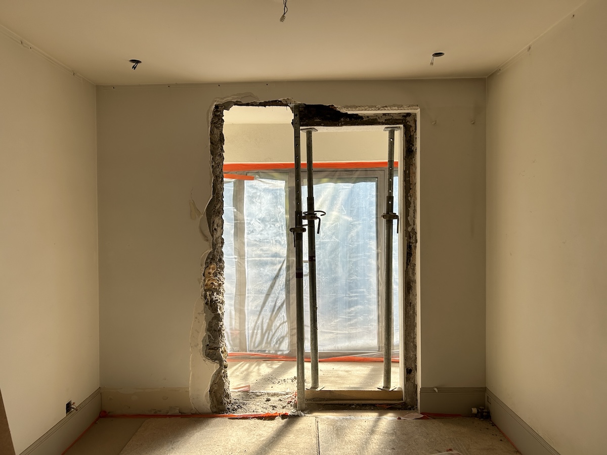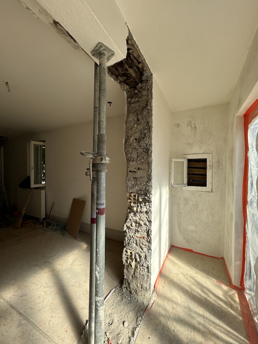 • La création d’une grande baie vitrée d’angle dans le salon, apportant une luminosité naturelle maximale et une ouverture sur l’extérieur.