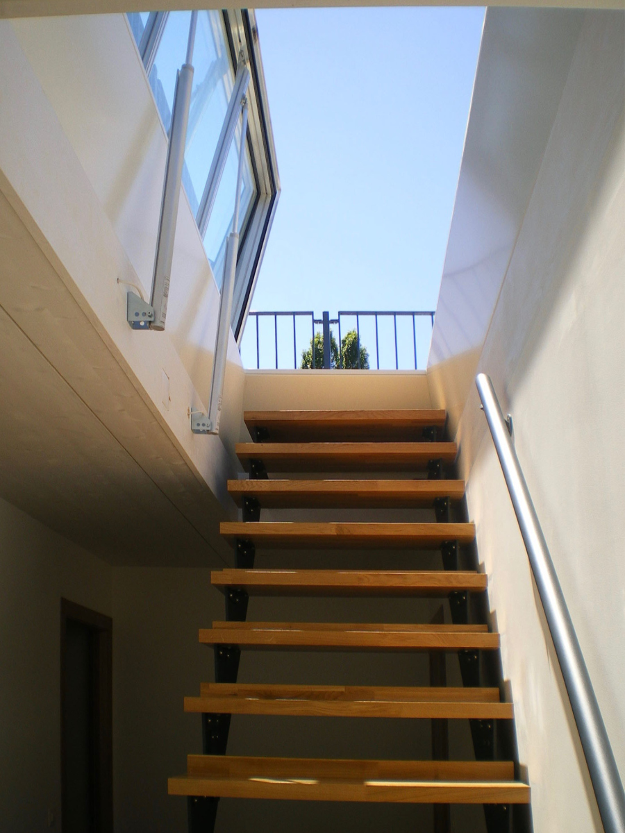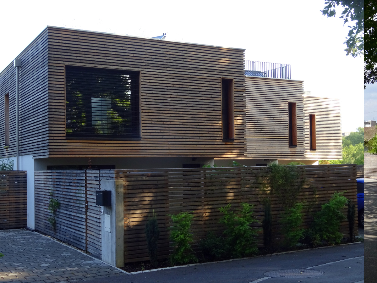 Sur une parcelle boisée à forte déclivité au bord d’une rivière, nous avons réalisé 3 maisons uni familiales contigües en bois.