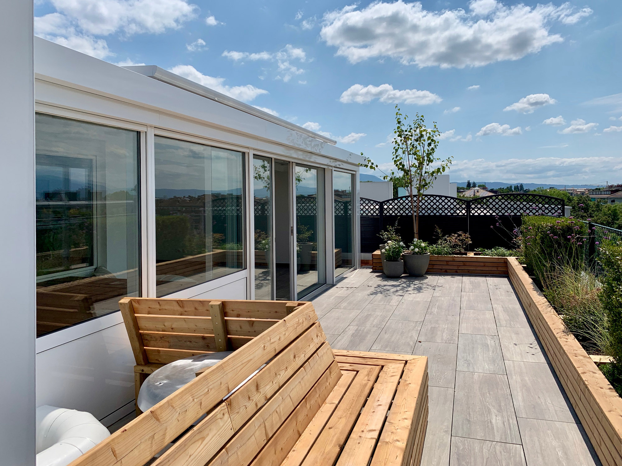 Projet d’aménagement de toiture en jardin et accès, et réalisation d’une verrière non chauffée située en attique d’un immeuble.
