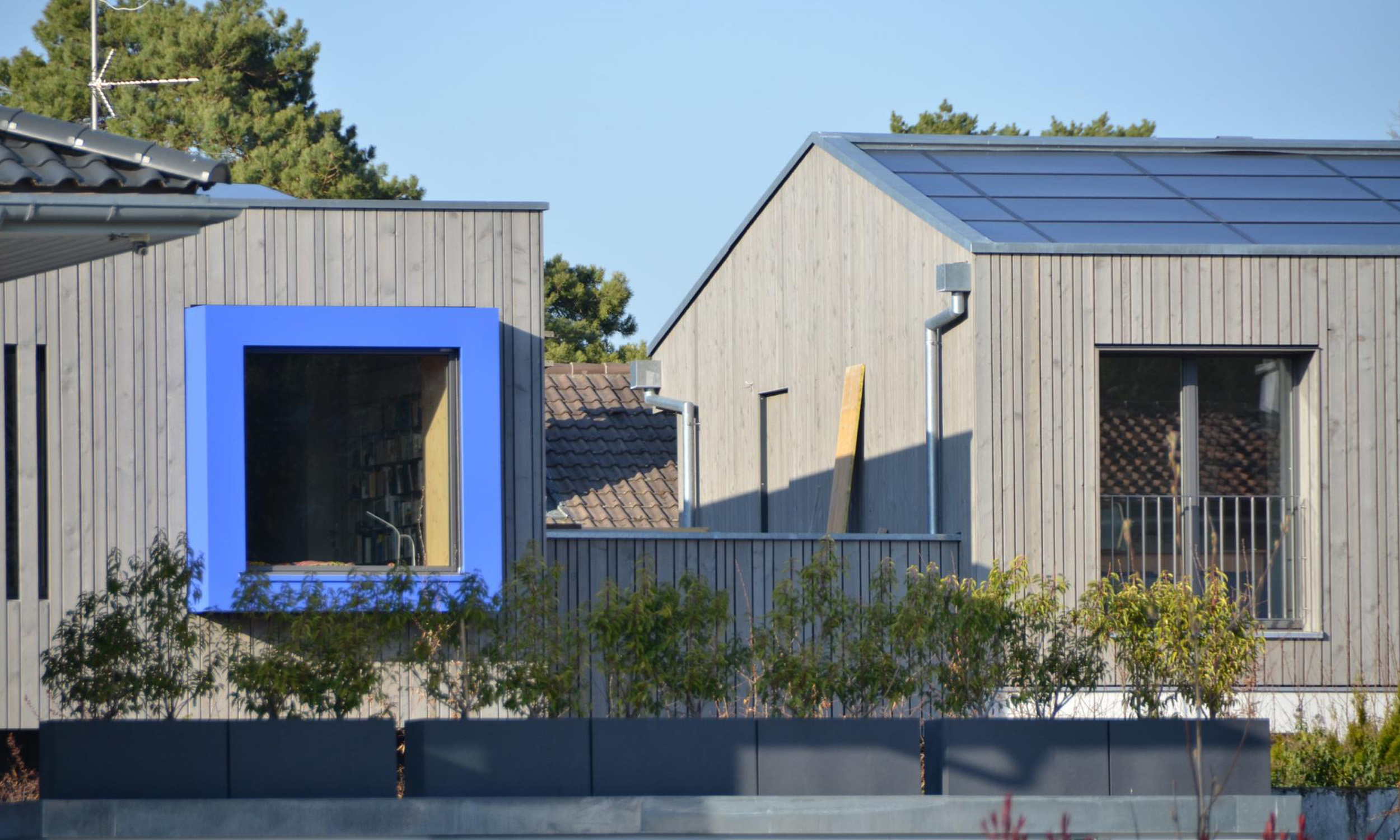 L’ensemble du projet a été conçu avec pour double objectif de respecter le caractère résidentiel et champêtre du quartier d’une part et de réaliser des maisons exemplaires d’un point de vue environnemental d’autre part.