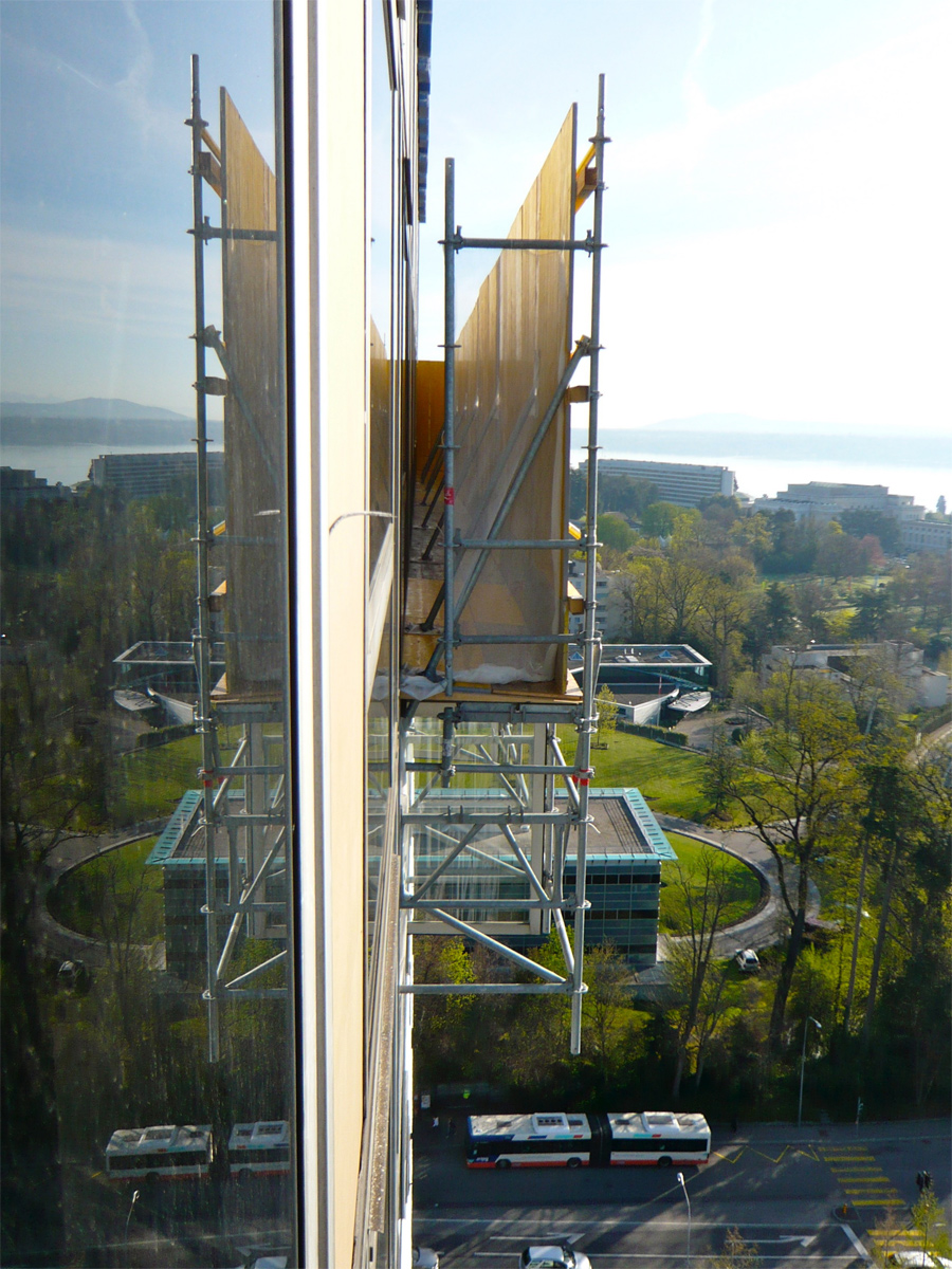De nombreuses discussions avec le service des Monuments et Sites, suivies d’élaboration de plusieurs dessins et de fabrication et pose de prototypes ont été nécessaires afin de parvenir à trouver la meilleure solution pour ces transformations, cet immeuble, construit entre 1961 et 1964 par le bureau d’architecte Julliard & Addor étant considéré comme un des représentant majeur de l’architecture des cette époque à Genève.