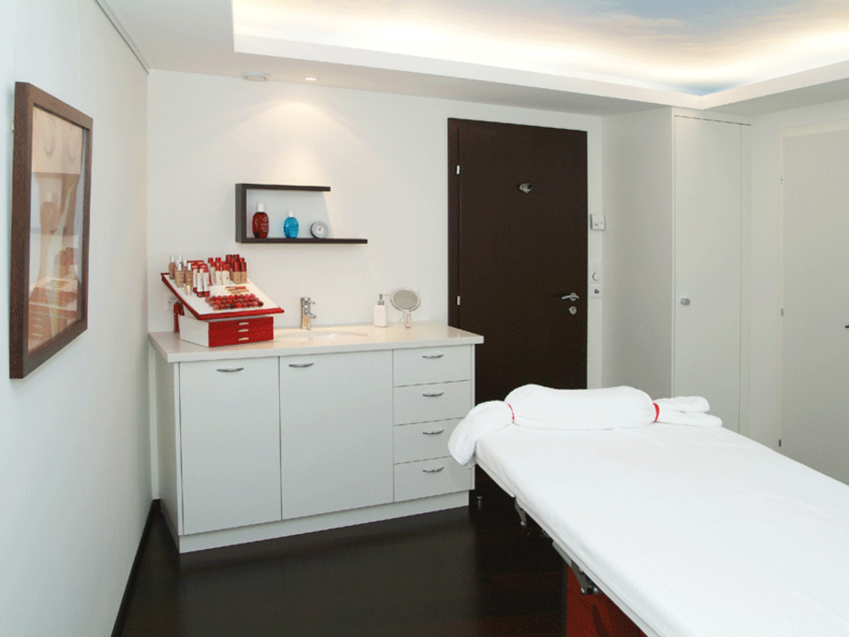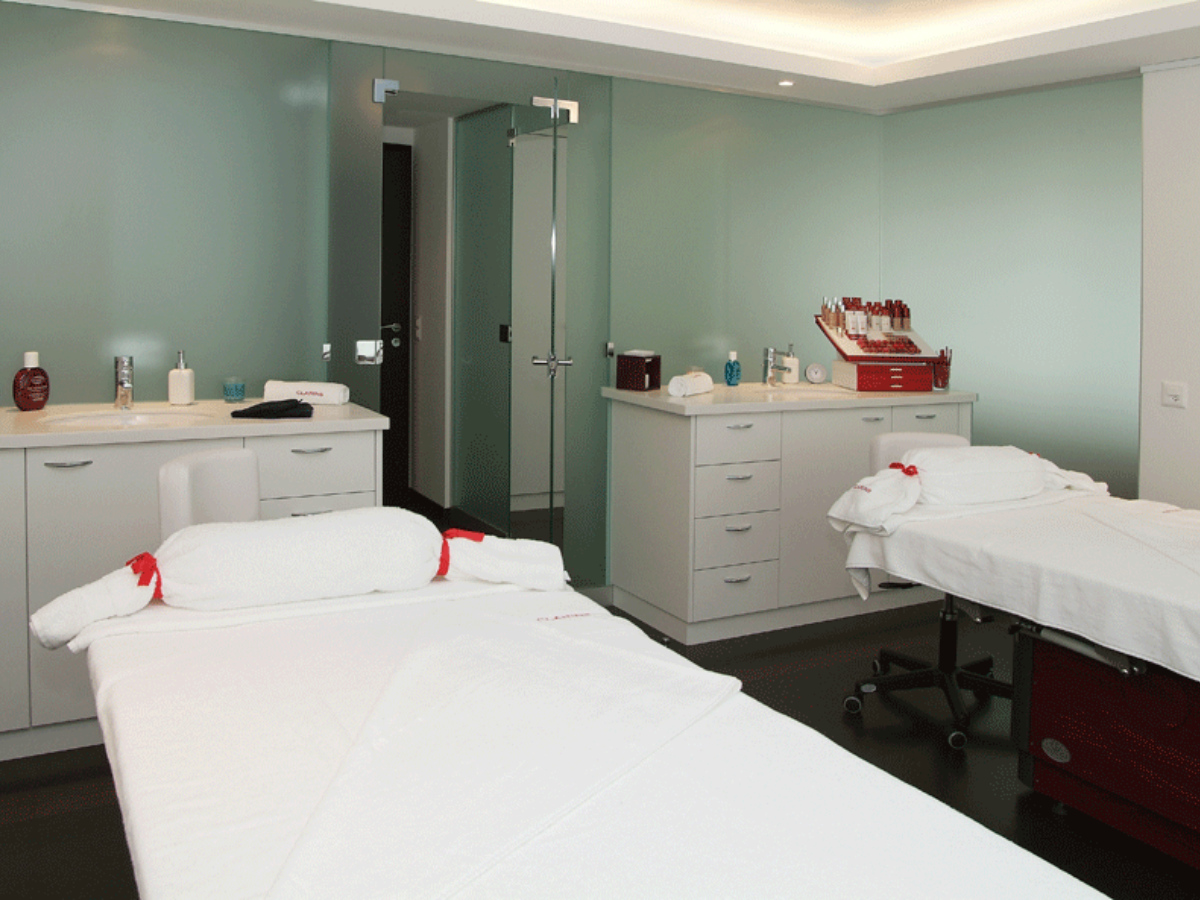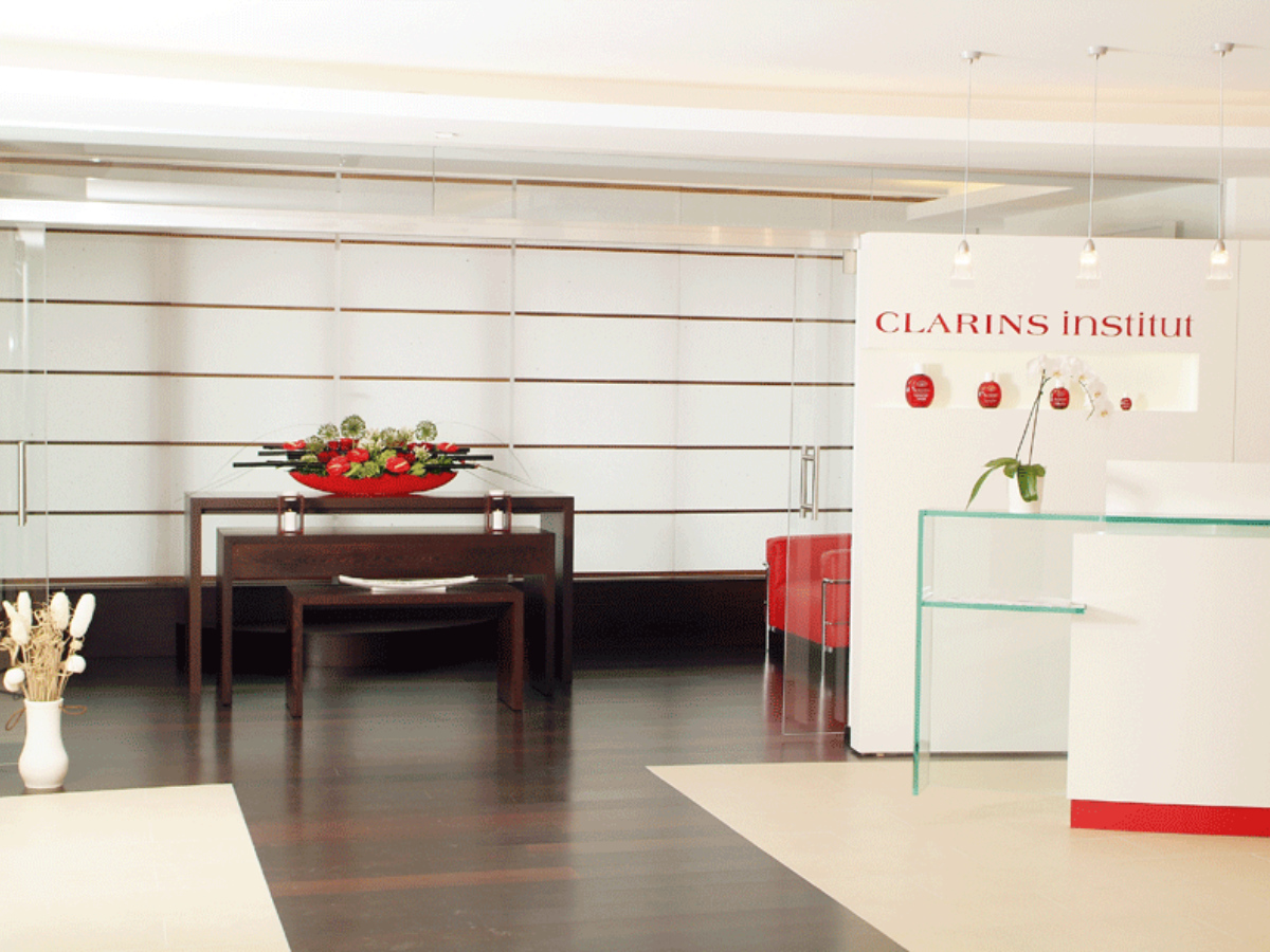 Conçu et réalisé par nos soins pour le compte de Clarins et de l’Hôtel Intercontinental, liant l’image de Clarins et le nouveau design de l’hôtel et occupant les deux tiers du 2ème étage de l’Intercontinental, cette réalisation offre un espace de soins, de sport et de détente.