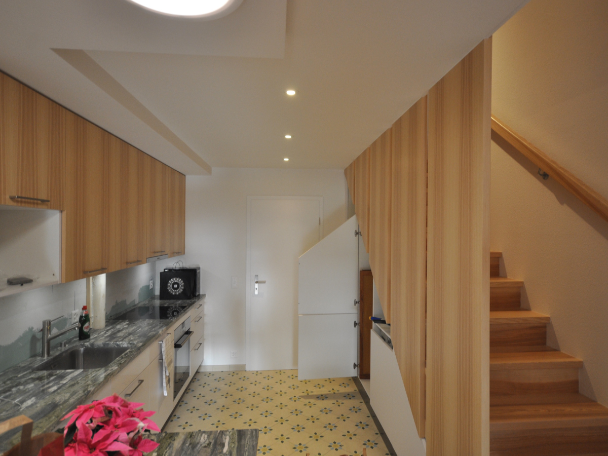Ancienne maison de famille de la propriétaire, cette maison de village comprenait 2 logements dont un loué et l’autre ayant été la résidence familiale. Afin de garder un « pied à terre » dans le village, elle nous a mandaté afin de rénover ce logement destiné également à la location tout en le divisant afin de créer un troisième logement dans la partie centrale du bâtiment.