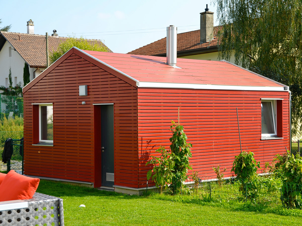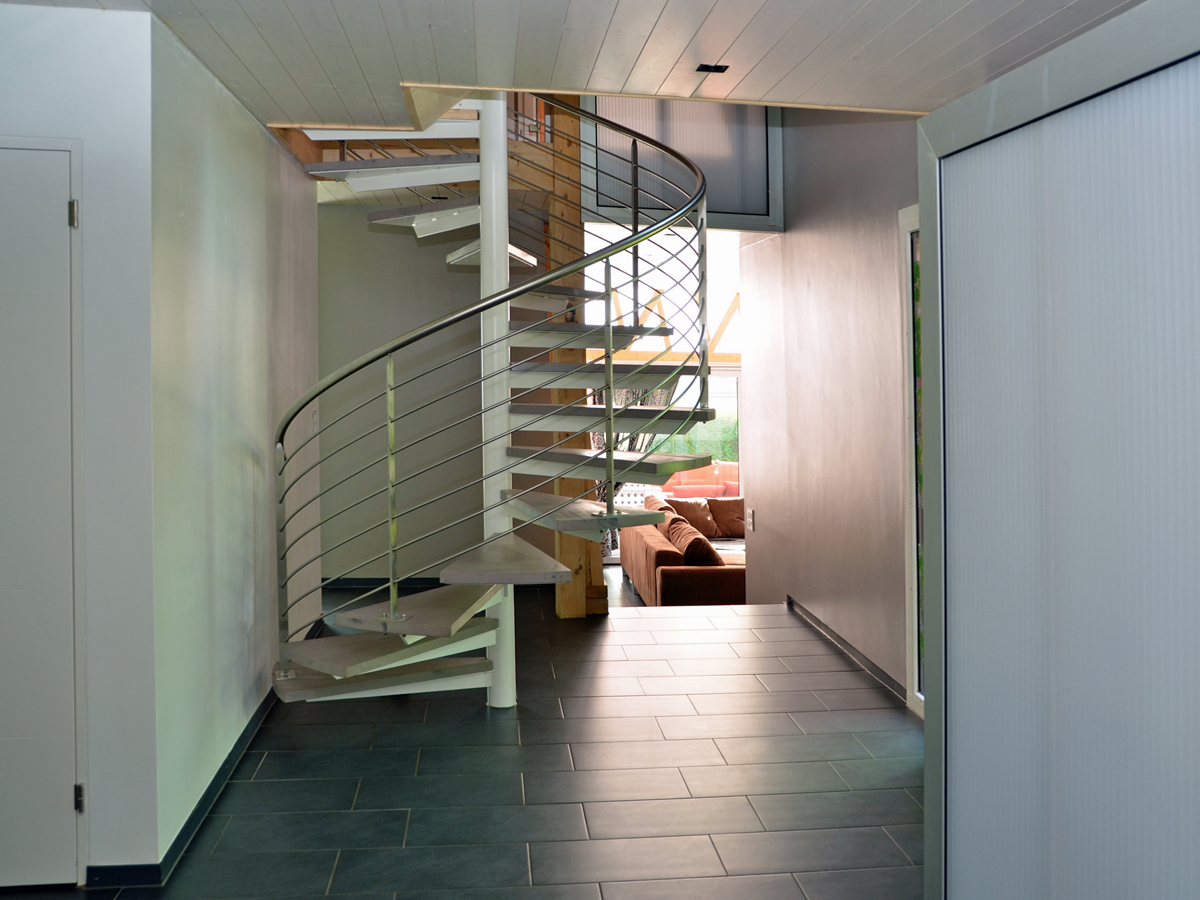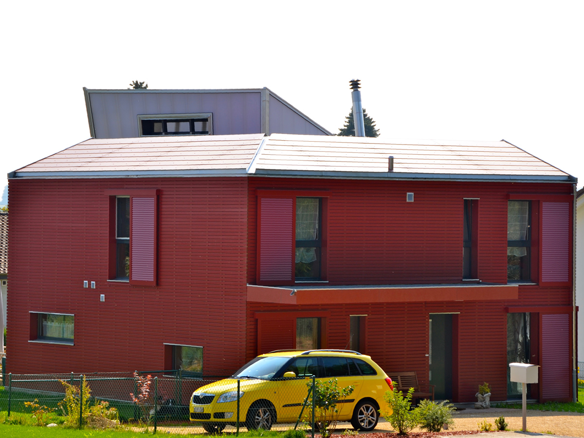 Sur le plan structurel, la villa est entièrement conçue en ossature bois, une couverture en plaques de fibrociment de teintes différentes recouvrant les toitures.