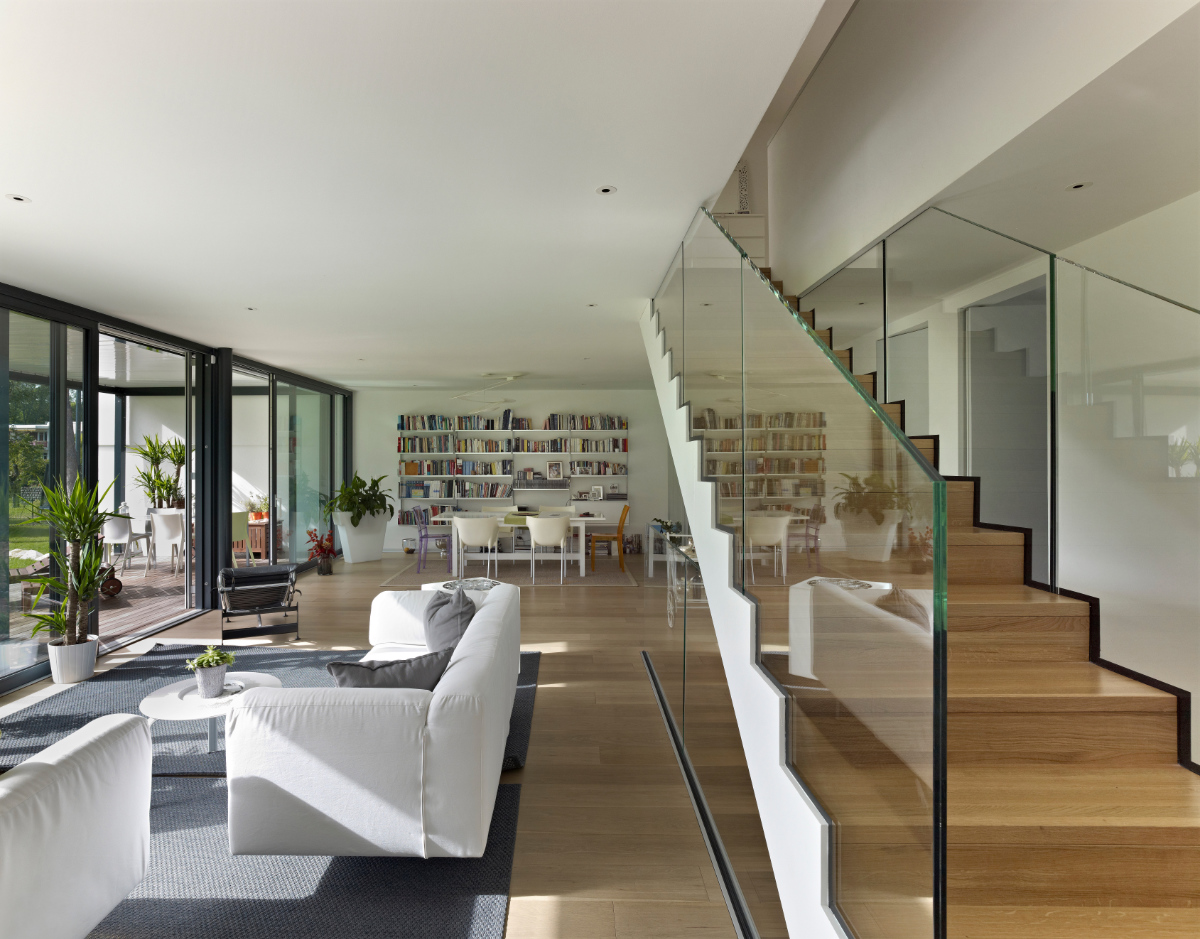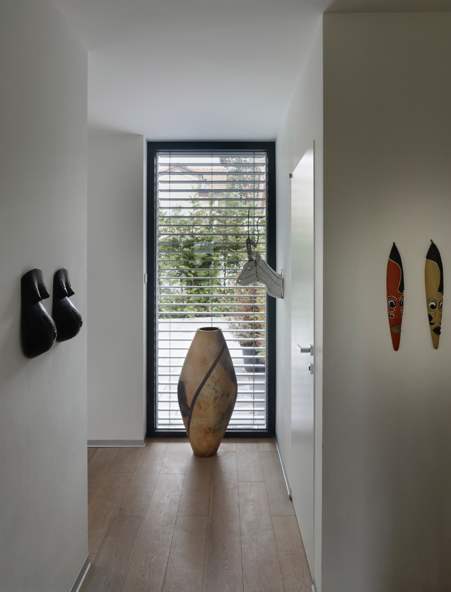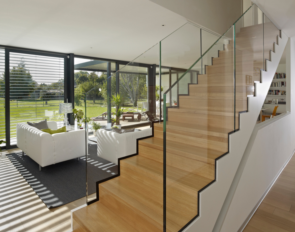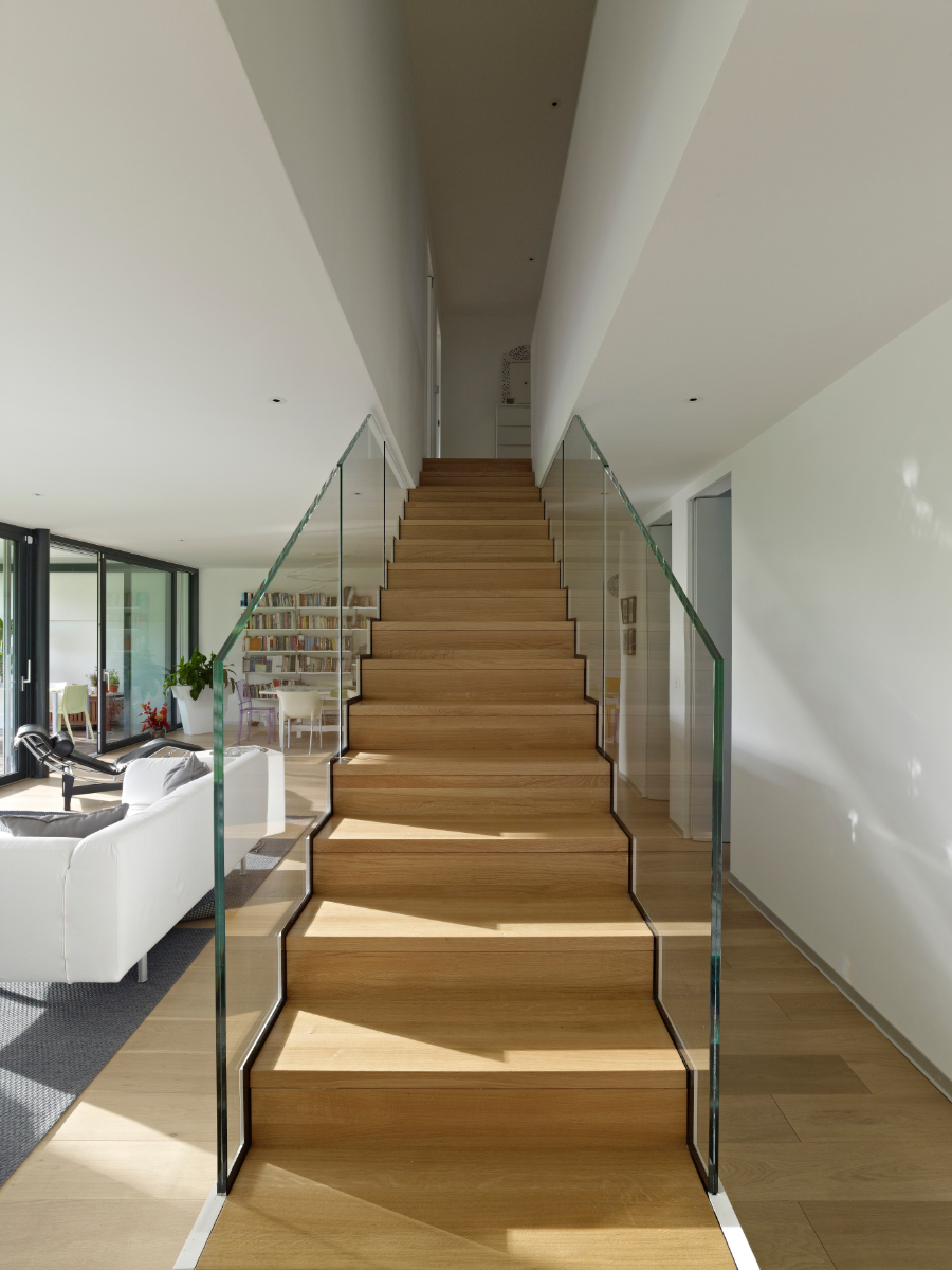 L’escalier joue un rôle central, organisant les espaces de vie.