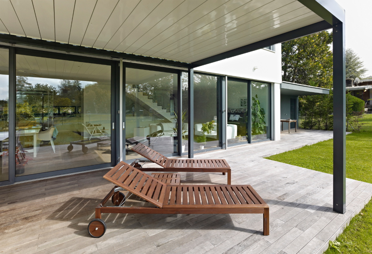 Le jardin, la terrasse et le rez-de-chaussée sont alignés permettant une circulation optimale.